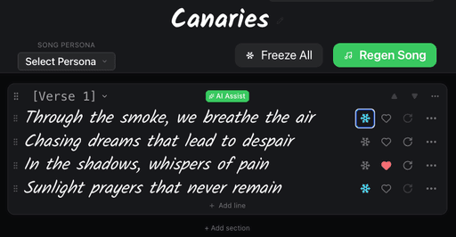 Write/refine your song w/AI assistance. However, these are your songs and so track your ability to copyright.